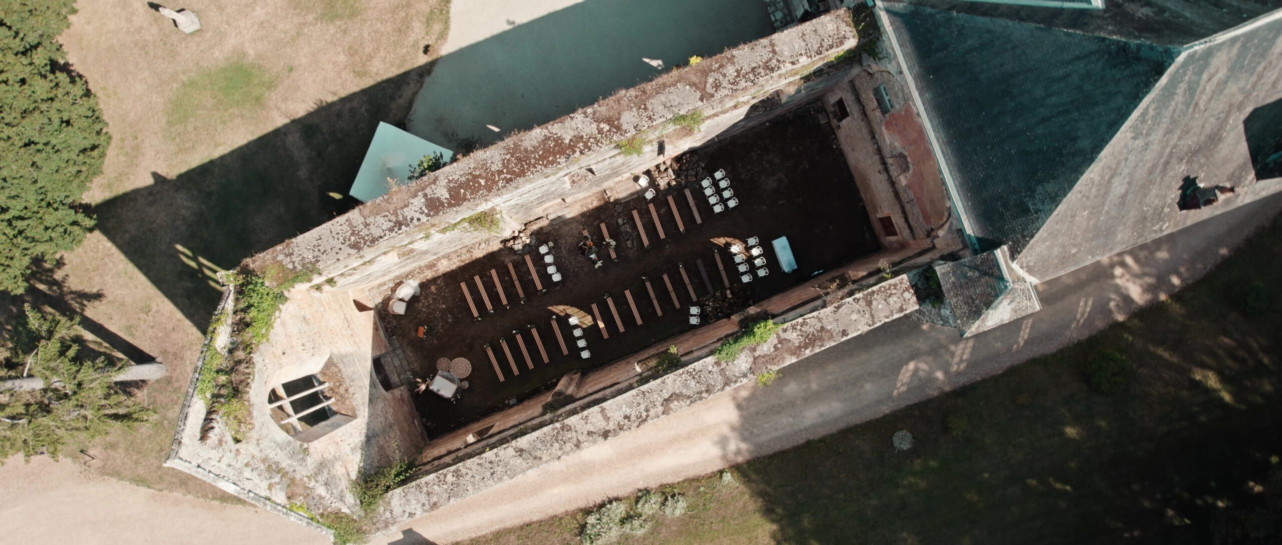 Pauline et Robin se sont mariés en août 2024, dans l'un des lieux les plus singuliers de la Vienne : l'Abbaye du Pin. Une abbatiale à ciel ouvert — quatre murs, pas de toiture — qui offre une atmosphère unique, à mi-chemin entre l'intérieur et l'extérieur. Les préparatifs de la mariée ont eu lieu sur place, dans ce cadre exceptionnel, pendant que Robin se préparait chez lui à Iteuil. L'occasion pour moi de capter les détails du lieu, l'ambiance qui se mettait en place, les petits moments d'avant.