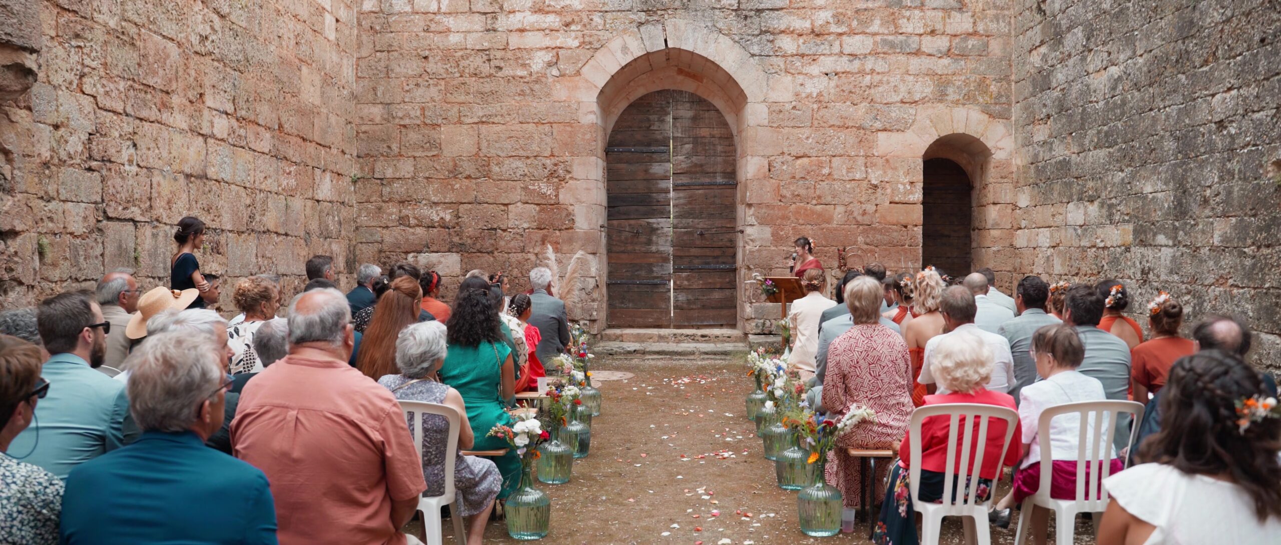 La cérémonie laïque avait été animée par une amie du couple, qui a su donner le ton de cette journée : festive, dynamique, jeune. Et comme pour coller à cette énergie, la météo a décidé d'ajouter sa touche : une pluie surprise en plein milieu de la cérémonie. Première fois en plus de 10 ans que ça m'arrivait. Tout le monde s'est abrité, on a consulté les applis météo, et quelques minutes plus tard la cérémonie reprenait comme si de rien n'était. Une anecdote dont Pauline et Robin se souviendront longtemps.